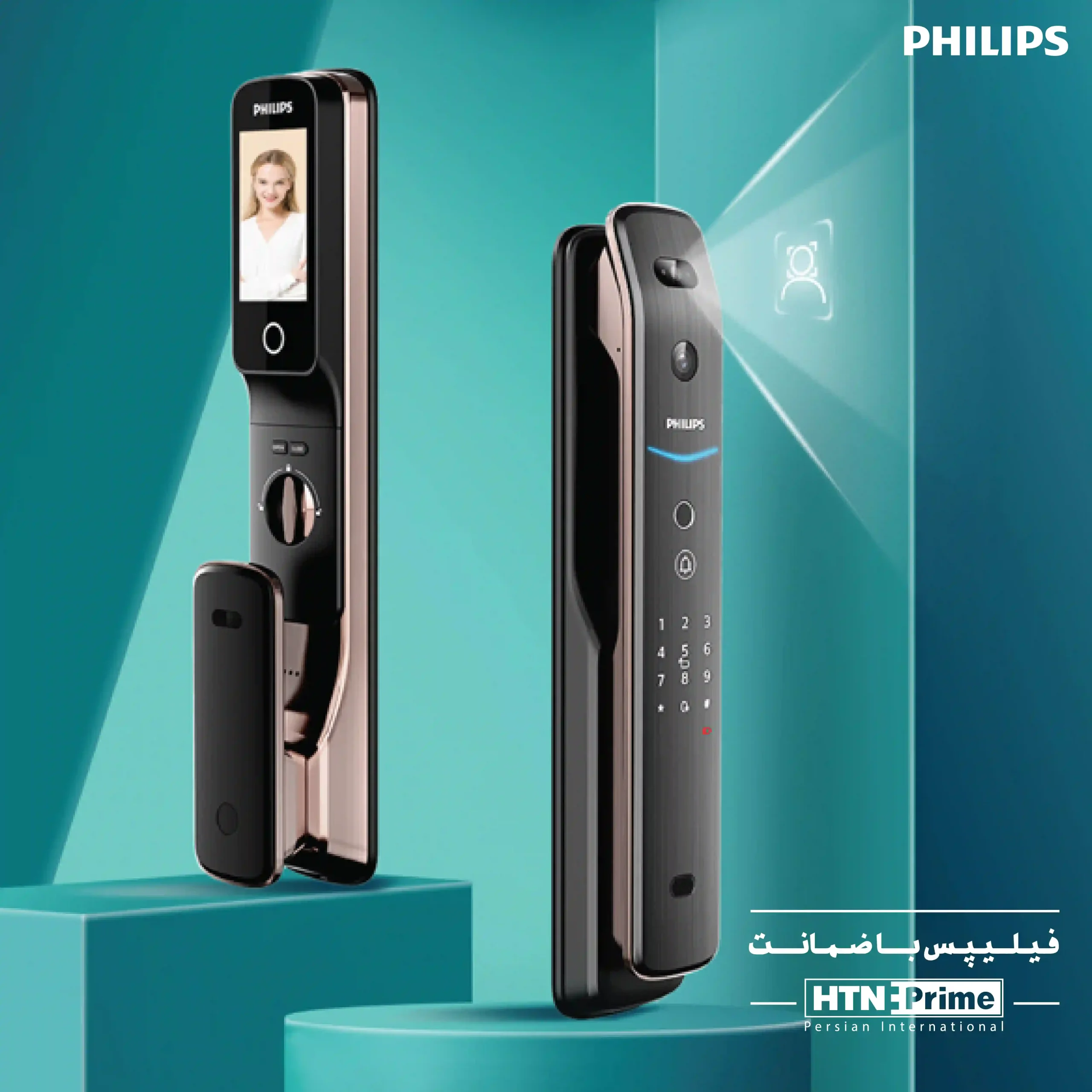 دستگیره هوشمند DDL709-FVP-7HWS با قابلیت تشخیص چهره و باز شدن قفل بدون نیاز به دست، یکی از محبوبترین دستگیرههای برند فیلیپس میباشد. این دستگیره دارای صفحه نمایش 4 اینچی میباشد و قابلیت مکالمه تصویری به صورت یک طرفه و مکالمه صوتی به صورت دو طرفه دارد.